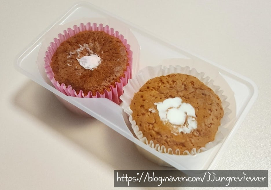 카스테라 머핀 용기가 핑크색과 크림색으로 딱 구분을 지어놨더라구요~