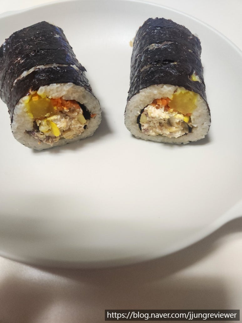 맛은 일반 김밥에 두부를 같이 먹는 맛