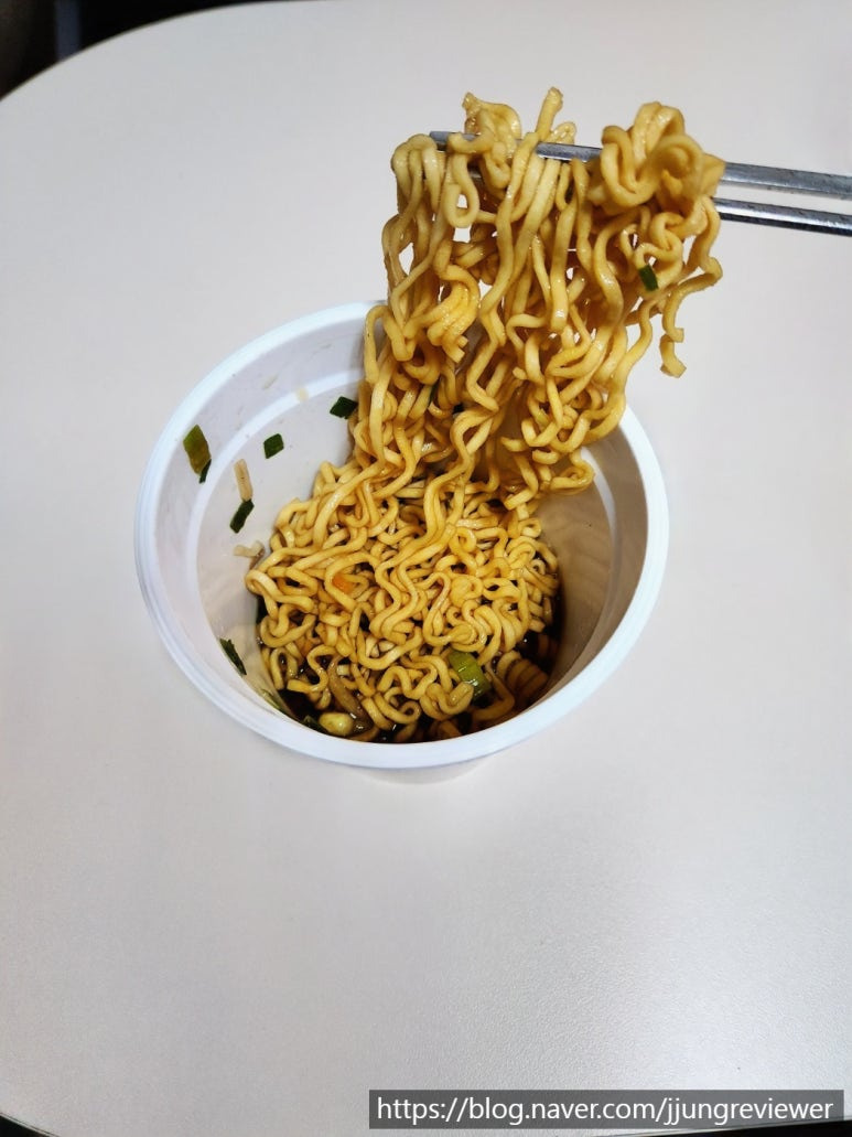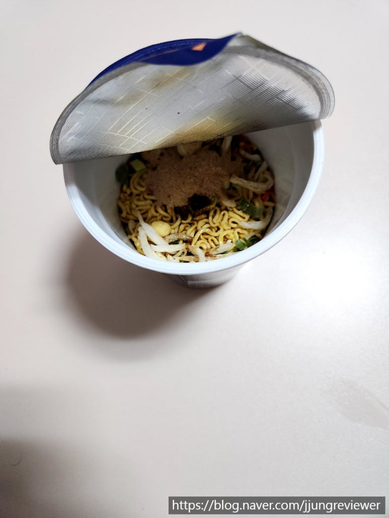 면은 컵라면 특유의 모습에