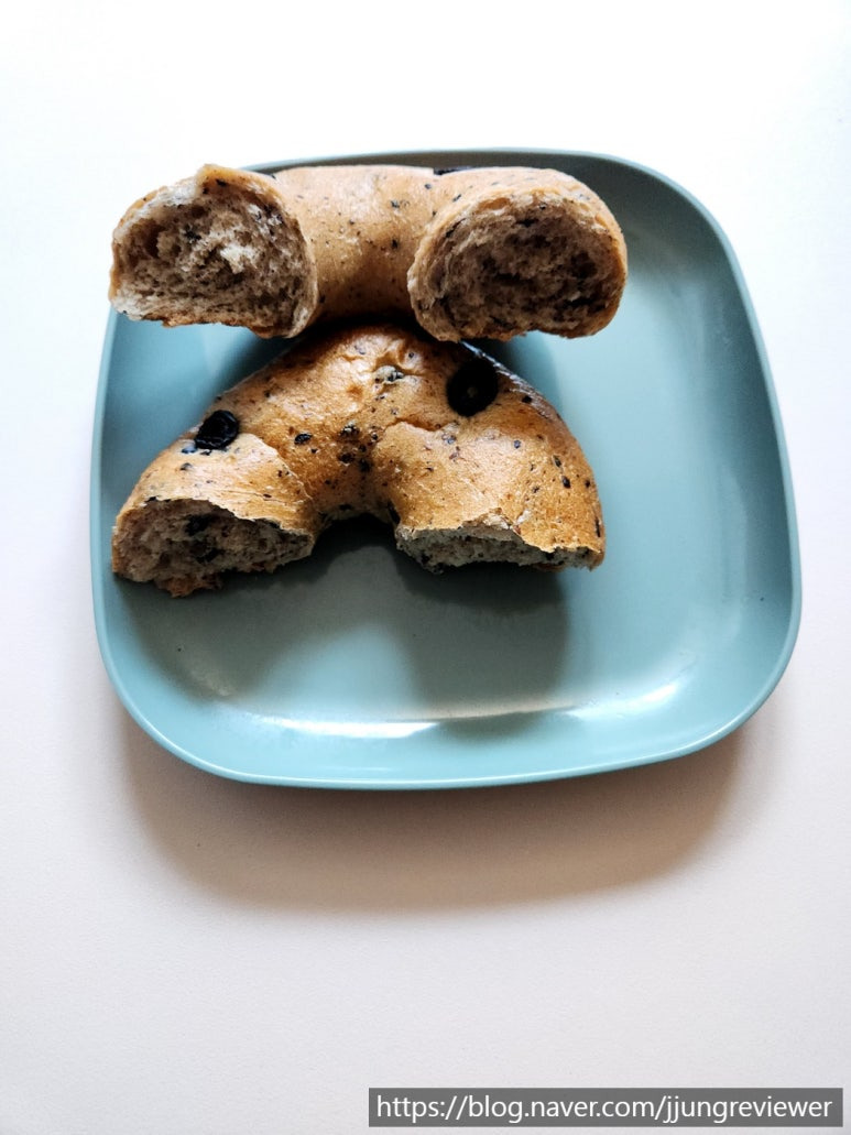 맛은 평범한 베이글에 블랙 올리브의 맛이 은은하게 올라옵니다